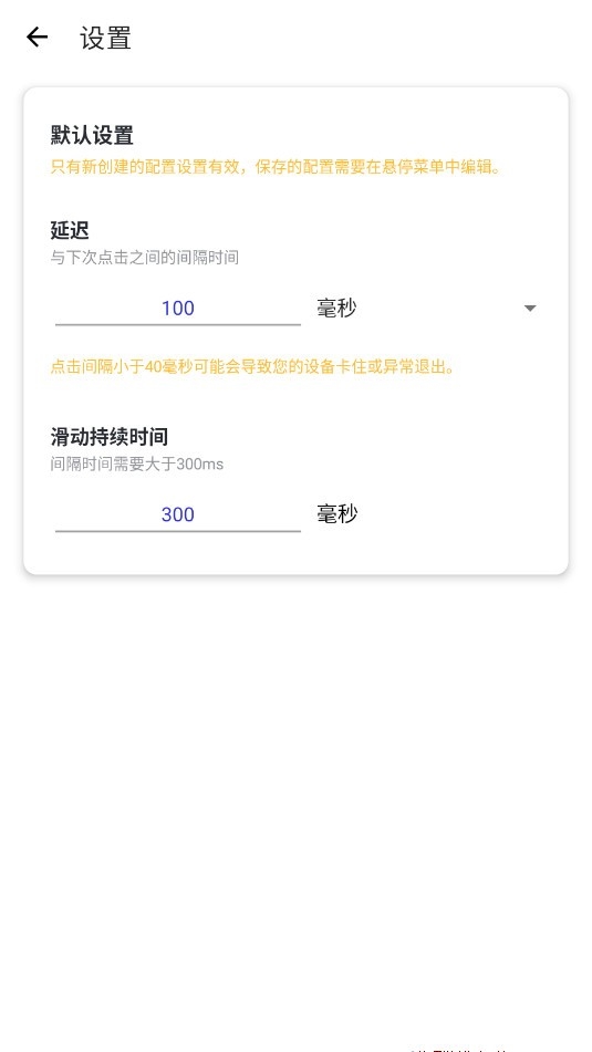 3.允许用户自定义点击频率.触摸时长.执行次数.滑动持续时长等参数。