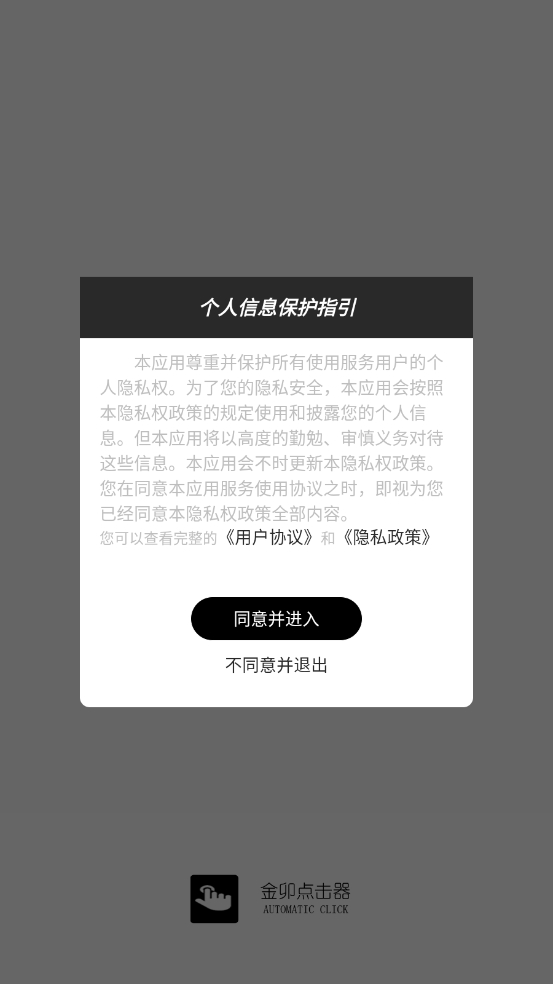 1、先在本站下载安装金卯点击器软件,查看相关用户的协议和隐私政策。
