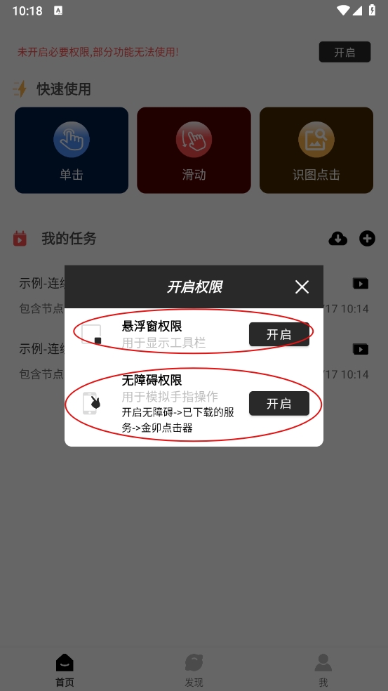 4、根据操作进行开启悬浮窗权限和无障碍权限。
