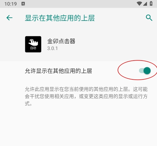 5、如图,点击开启允许运用在上层的开关,然后退出,从新启动。