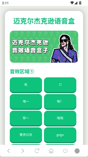 迈克尔杰克逊语音盒是由B站UP主“趣味语音盒”自制的一款致敬流行天王的主题语音应用,精心收录了与迈克尔·杰克逊相关的各类经典语音内容。用户只需直接点击目标语音条目即可快速播放,操作流畅便捷,方便乐迷与爱好者随时收听回味,沉浸于这位传奇巨星的音乐文化与网络梗带来的独特乐趣之中。