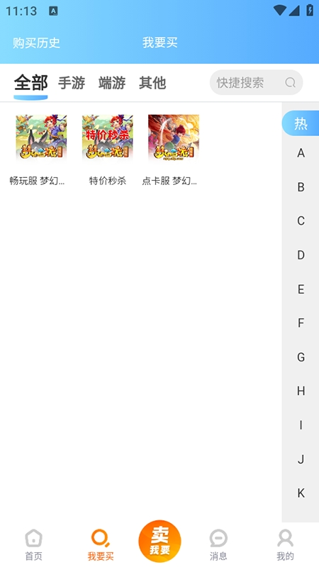 打开游侠账号APP,登录后进入“首页”,点击“买账号”,选择“手游/端游/其他”分类;