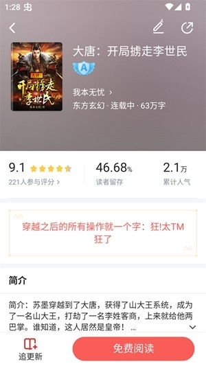 2.完全免费阅读,无任何付费墙和隐形消费