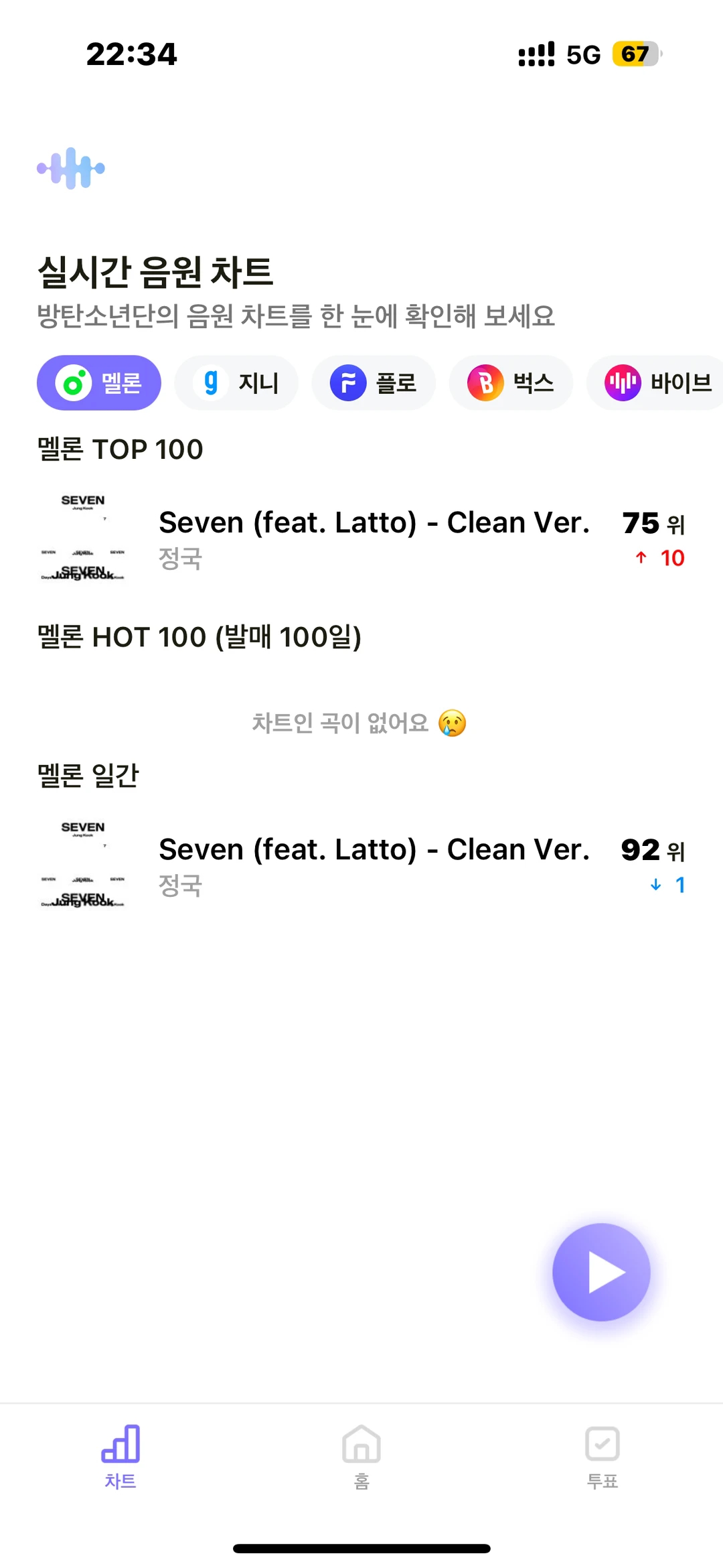 armybada是一款追星必备应援工具,所有功能免费,软件界面为韩文显示,暂时不支持直接翻译成中文,提供音乐播放助力,还能整合活动信息、创建歌单,操作简单。支持多设备,进入软件选明星,点击立即投票即可。免费下载,让你轻松应援!对软件感兴趣的话不妨点击下载吧!