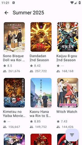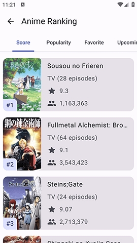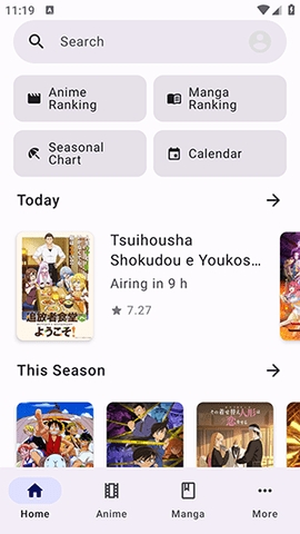 3、如Seasonal Anime日历、按季度搜索动漫、热门排行榜、个人统计信息等,等待你来探索!