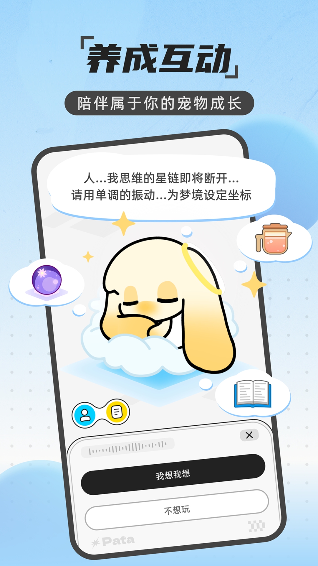 个性化定制:自定义Pata的外观、昵称,打造独一无二的虚拟伙伴,满足个性化偏好。