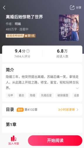 3、点击想看的小说,了解小说的基本简介;