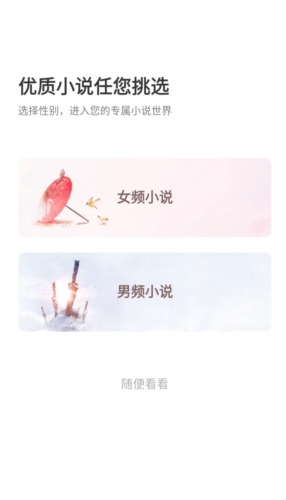 1、选择性别,进入你的专属小说世界;