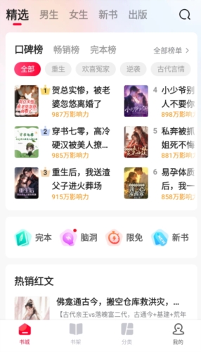 1、平台内容聚合能力突出,囊括了男频、女频、悬疑、冒险等几乎所有主流及细分小说题材。