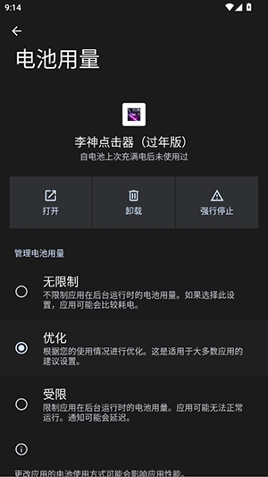 无限制功耗:将其设为“省电策略-无限制”,确保在锁屏或长时间运行时点击不中断。