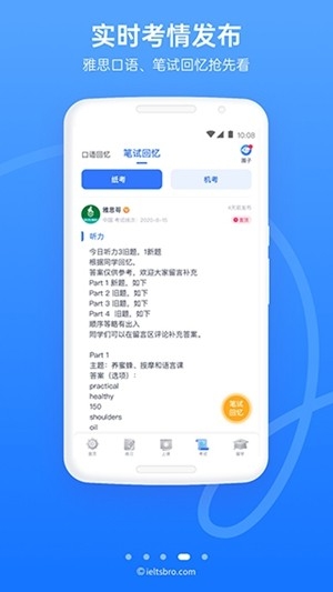 2.考圈连接全球雅思考生,能看到考试回忆和高频话题清单,还有考点解析、备考干货等资讯。