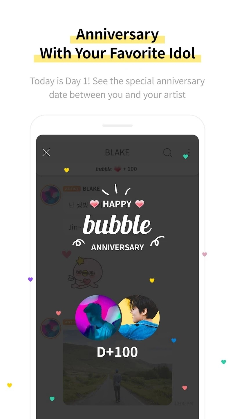 bubble是一款偶像团队社交聊天软件,粉丝可向偶像发送消息,偶像上线时会查看并回复,他们将不时分享他们的动态,有很多新奇有趣的约会和分享功能。地图信息交互和匿名共享功能非常有趣。您还可以使用AR功能查看附近的约会信息等。