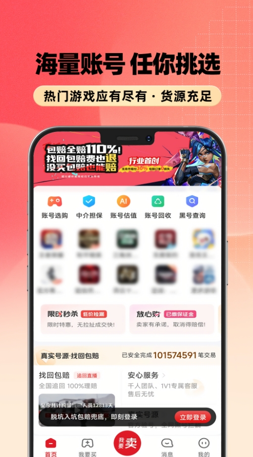 浣熊账号是线上账号交易平台,用户可以在平台上买卖游戏账号、装备、道具等虚拟物品。拥有丰富的游戏产品,在这里你可以查询到各种不同热门游戏的账号在这里可以进行交易,感兴趣的用户赶快下载体验吧!