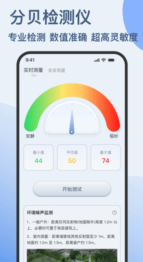 1、提供高精度的分贝测试数据进行查看,用户可以随时进行测试。