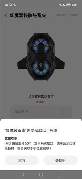 3、打开定位、蓝牙,把风扇通电可以直接用手机充电器直插给电,然后在装备库里连接。