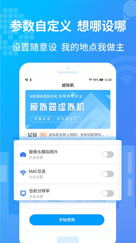 小八虚拟神器是一款免root使用的手机虚拟工具,内置综合工具和参数自定义等功能,用户在这还能修改手机参数达到保护自己隐私的目的,能够在手机中虚拟构建出另一部手机,让你一部手机分身成两部手机使用!