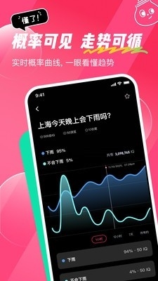 1、在这里,你可以围绕赛事、科技、娱乐、财经、时政等话题发起预测,表达自己的判断,和社区一起等结果揭晓。
