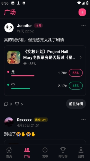 1、在广场页面有其他用户发出的投票帖子。