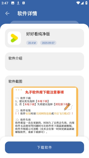 丸子软件库是一款宝藏应用分享中心,汇集了众多被大神精心修改过的特殊版本,这些修改版应用,去除了烦人的广告,或是优化了操作界面,为用户带来更加便捷、舒适的使用体验不管你想看漫画还是看电视、小说,这里都有符合你要求的app等你下载,所有上架的应用都经过了平台严格的安全检测,专业技术团队会对每一款应用进行多维度的病毒查杀和风险评估,确保应用无毒、无恶意插件,让用户下载使用时全无后顾之忧。