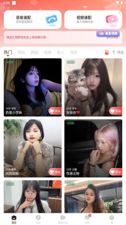 通过聊天.语音及视频的方式帮助用户建立稳定的社交关系。