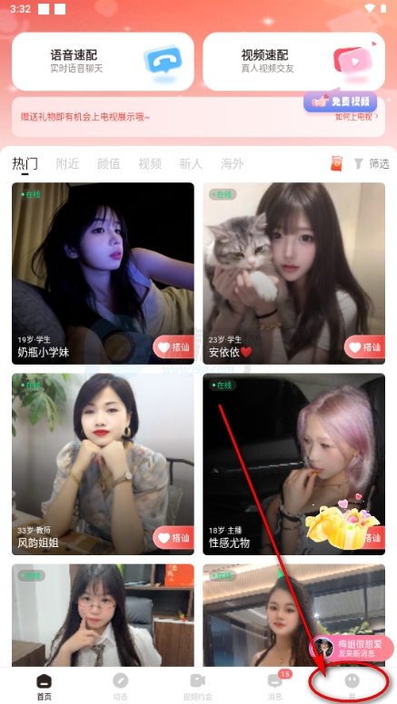 1、在首页选择一个自己想要交友的对象;