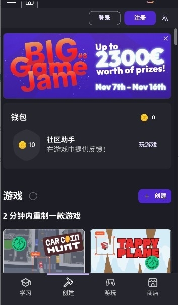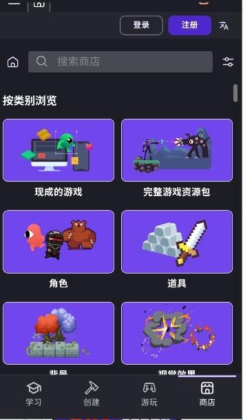 3、丰富模板与素材库:提供数十种游戏模板和预制对象库,支持直接使用或导入自定义素材。