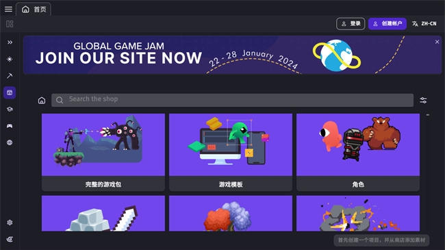 1、下载安装gdevelop后进行注册登录,点击左侧小锤子标志进入。